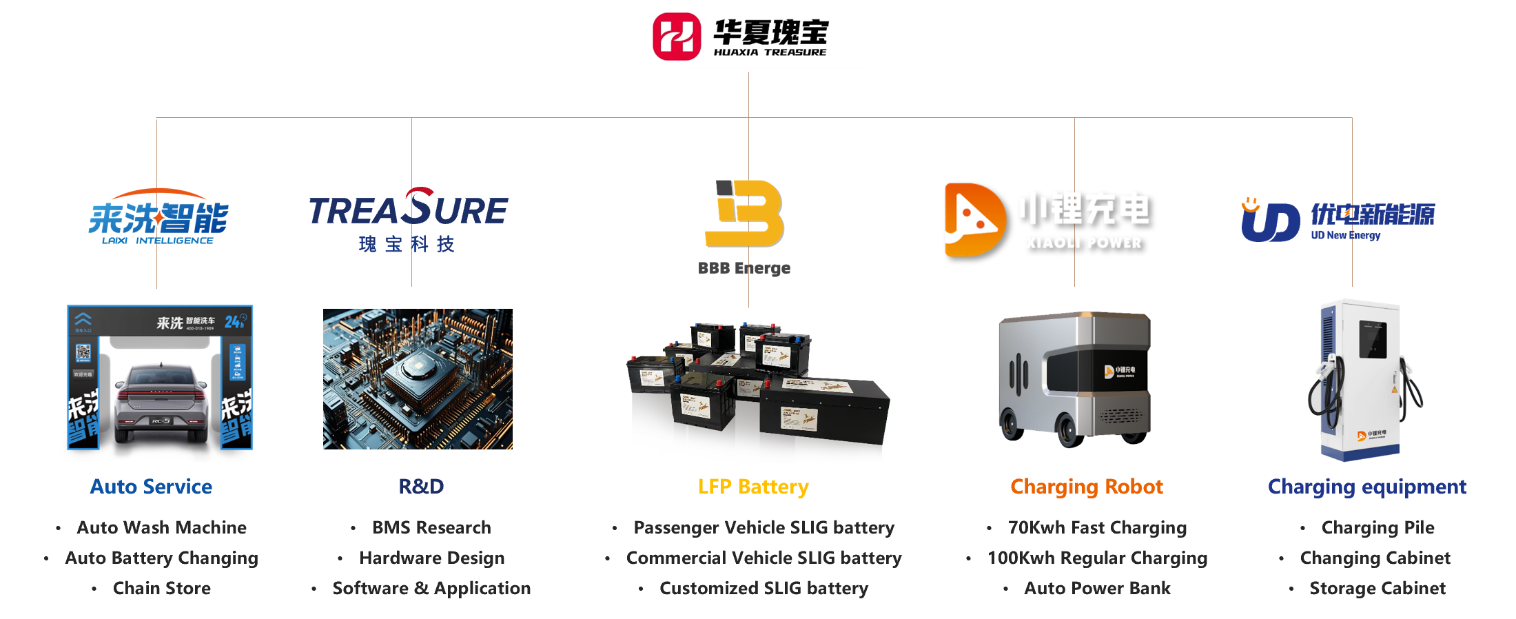 HUAXIA TREASURE is the umbrella company for BBB Energe. Under it, there are five companies that specialize in different segments of the new energy industry.